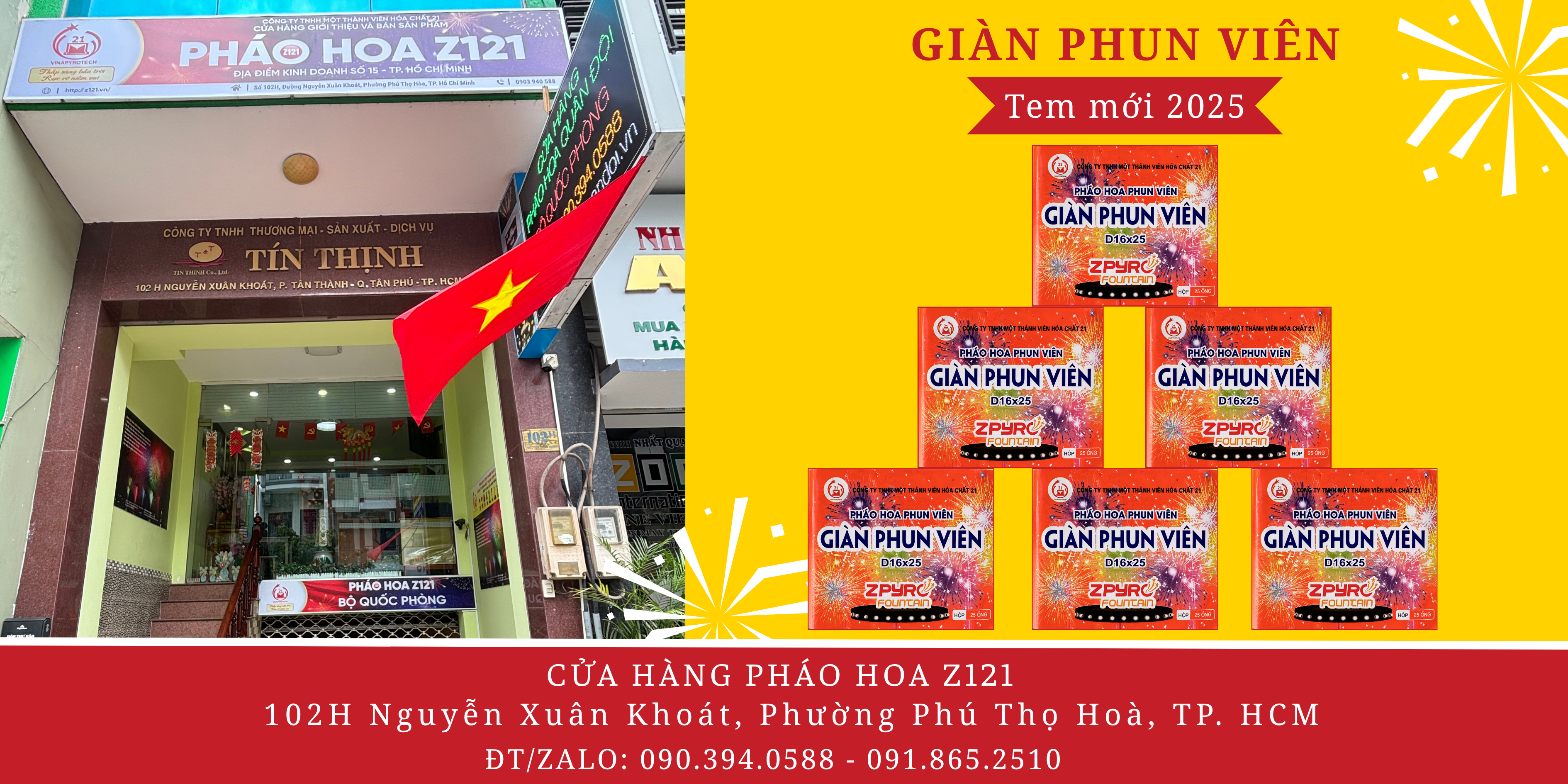 Giá bán sản phẩm pháo hoa được niêm yết tại các cửa hàng trên toàn quốc. Để biết thêm chi tiết vui lòng liên hệ Cửa hàng.